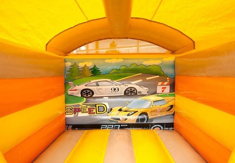 Lekker springen en swingen op dit springkussen! Voor de jonge auto liefhebbers is dit springkussen uitermate geschikt voor feestjes.