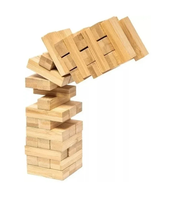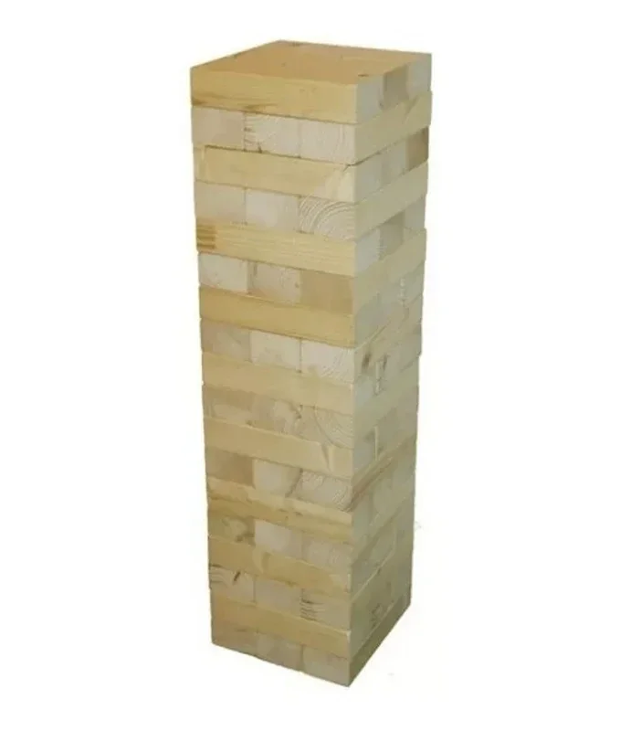 Speel het spannende spel Djenga XXL Probeer een zo hoog mogelijke toren te bouwen door de blokken uit de toren te halen en deze weer daarna bovenop de toren te plaatsen zonder dat de toren omvalt!