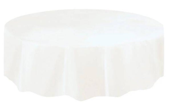 Voor €5,00 huur je een ronde witte tafelkleed die netjes over de tafel heen past.